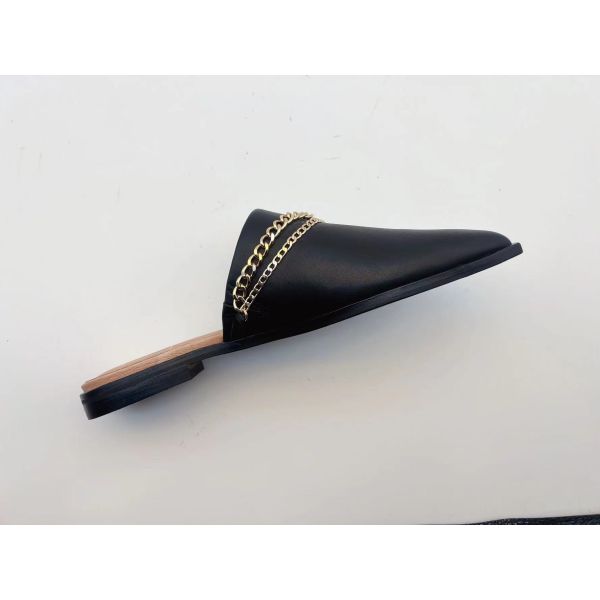 one piece nappa genuine leather Ladies Flat Casual shoes with metal ring design,Black closed toe slippers