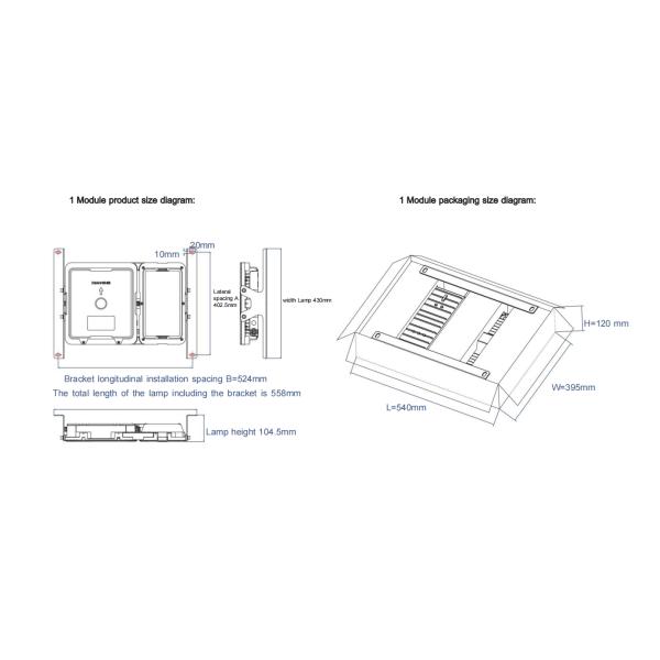 | Model | Power | Module QTY | PACKING(LxWxH) | A | B | EPA | Weight | Packaging size (l x w x h) |