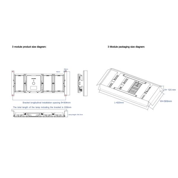 | MFTL-T9-270 | 270W | 3 pcs | 938*430*104.5 | 402.5mm | 904mm | 0.4033m² | 14.30kg | 920*395*120(mm) |