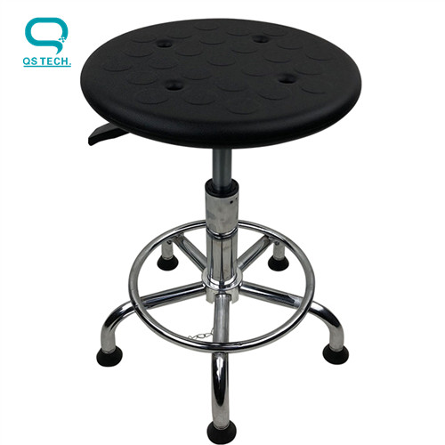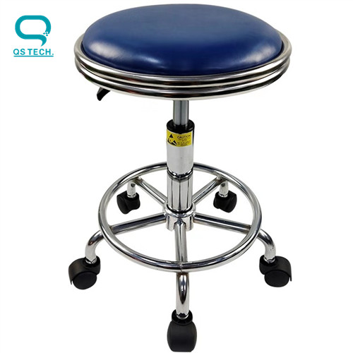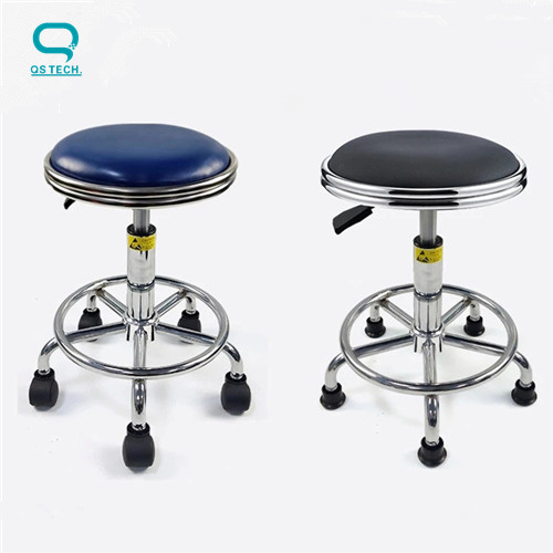 Permanent anti-static PU leather bench with blue and black.Disposable foam molding, beautiful appearance, durable wear-resistant, no dust, surface resistance Ω 107-109, with black paint or colored zinc plated chassis, chassis 140/200/260 three steam lifting lever, can adjust freely according to the human body posture and position, the electroplating five-star feet.Conductive rubber foot pad, conducting wheel, conductive foot cup, purification package stainless steel foot pad.Applicable to electrostatic sensitive areas and clean indoor use.