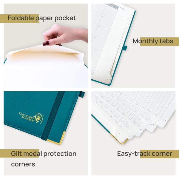 100GSM Ivory Paper 2 Page Weekly Planner Pacific Green PU Cover
