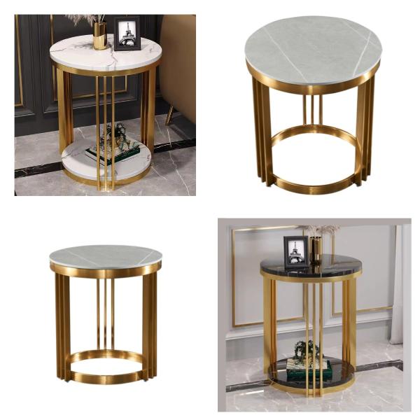Elevate your living space with the LuxeSteel Strip Ceramic Marble Side Table, where modern sophistication meets the timeless beauty of nature. This design concept embraces the juxtaposition of sleek, industrial-inspired stainless steel strips with the organic allure of ceramic marble composite. It seamlessly blends these contrasting elements to create a visually captivating and harmonious piece.