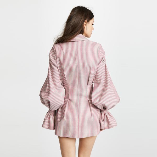 | Product Name: | Stripe ballon sleeves V neck blazer mini dress |