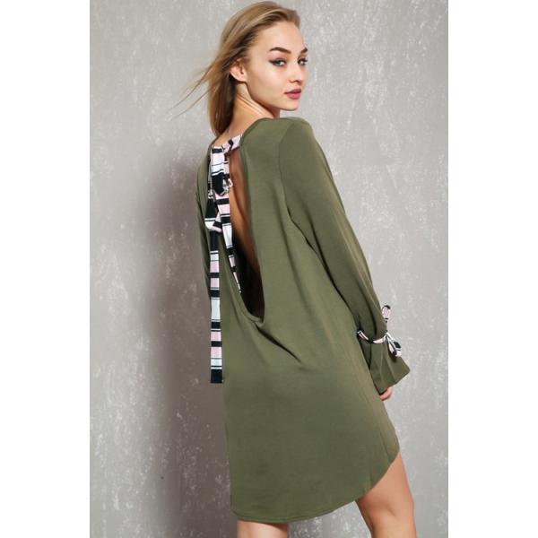 | Product name: | Olive Tie Sleeve Open Back Tunic Casual Dress |
