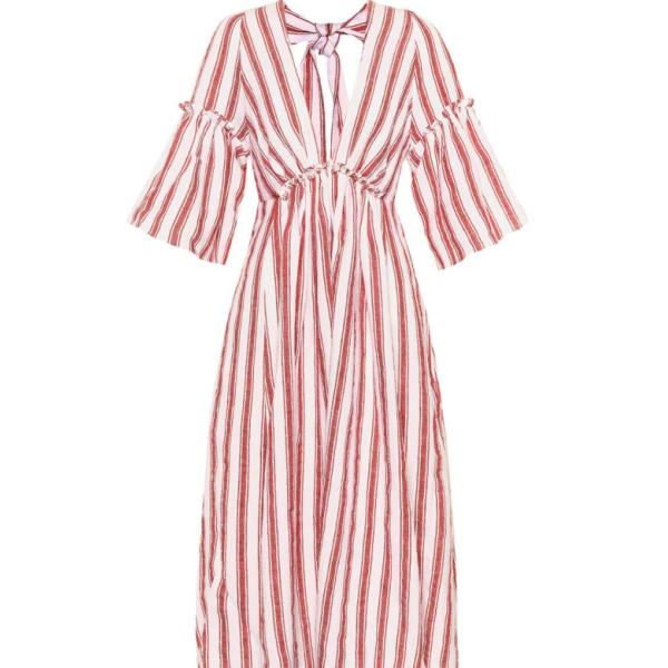 | Product name: | Deep v neck stripe linen dress |