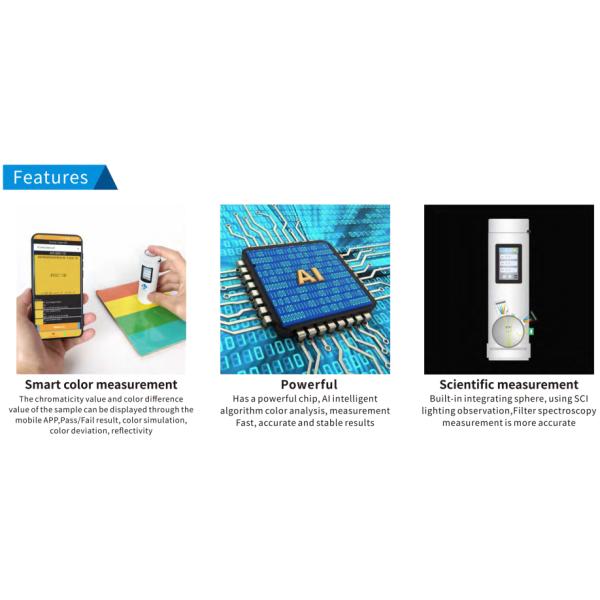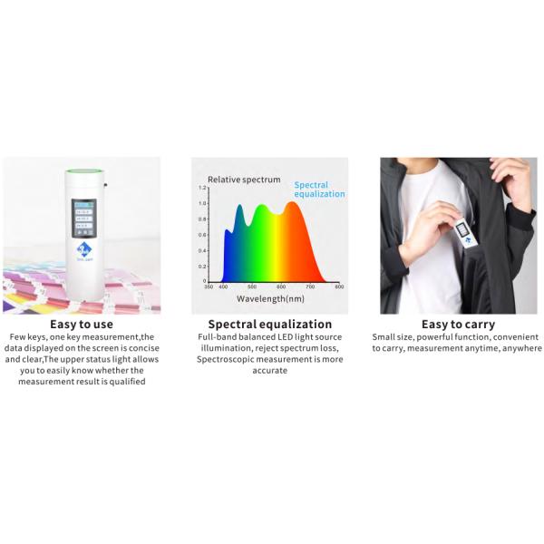 Repeatability less than 0.1, display accuracy 0.1, one light press can bring you precise color measurement.