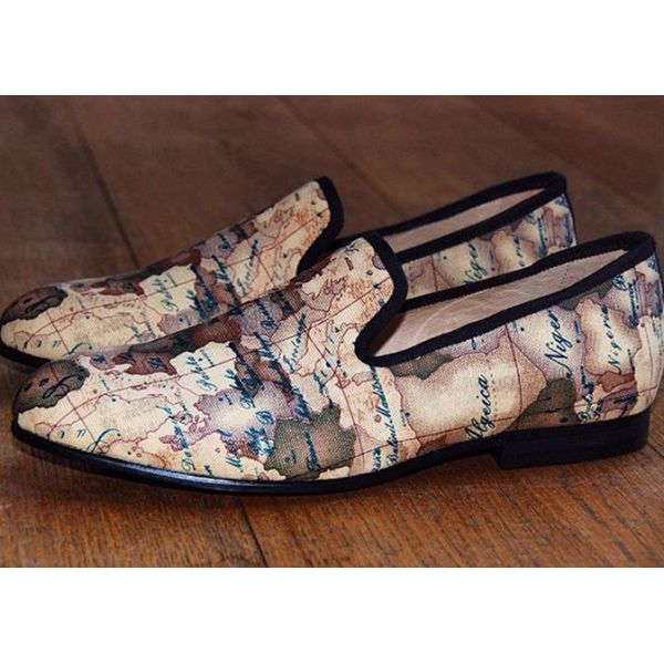 Brown Map Printed Evening Mens Casual Loafers , Customised Mens Woven Loafers