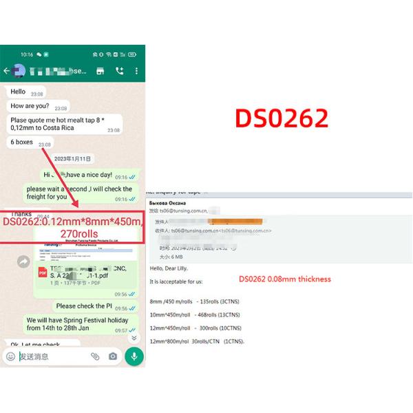 The DS0262 adhesive is designed to provide excellent bonding compatibility with a wide range of fastener types, including C-type nails, M-type nails, T-nails, O-bolts, and U-shaped metal buckles. This versatility allows for seamless integration into different assembly processes and applications.The hot melt adhesive film formulation of DS0262 is optimized to ensure strong and reliable alignment bonding between the fasteners and the respective substrates. It provides exceptional adhesion strength, ensuring secure and long-lasting connections.