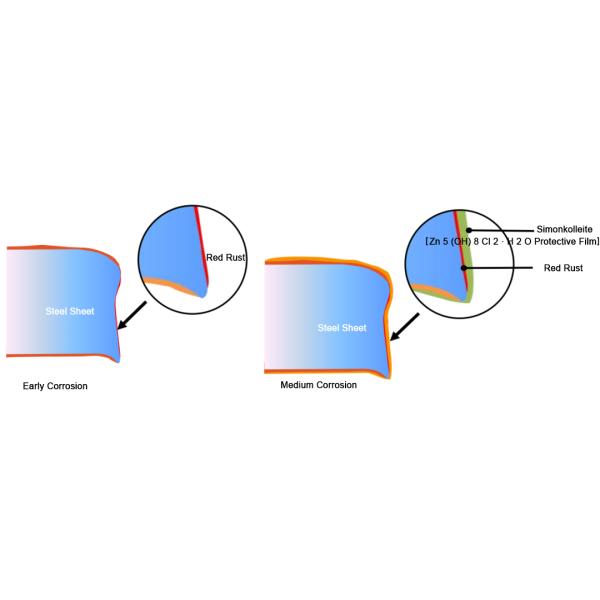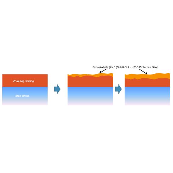 Corrosion resistance of Zn-Al-Mg coating steel is significantly better than that GI.