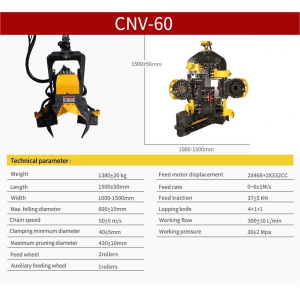 The clamp can be adjusted automatically and is suitable for cutting trees of various diameters, with a minimum of 1cm