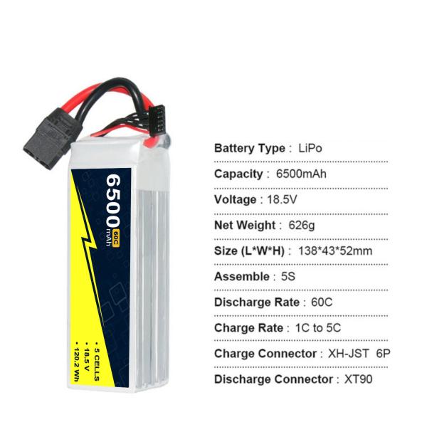 Lipo Lithium Ion Polymer battery Hard Case 18.5V 5S 6500mah 60C Car Toys Rc Toys Balance Charger Rc Battery Power Tool