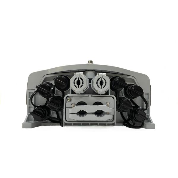 Top cover with laser mark, and large space for 2pcs splice trays, 1 for splitting, 1 for fusion, and bottom splitter fix