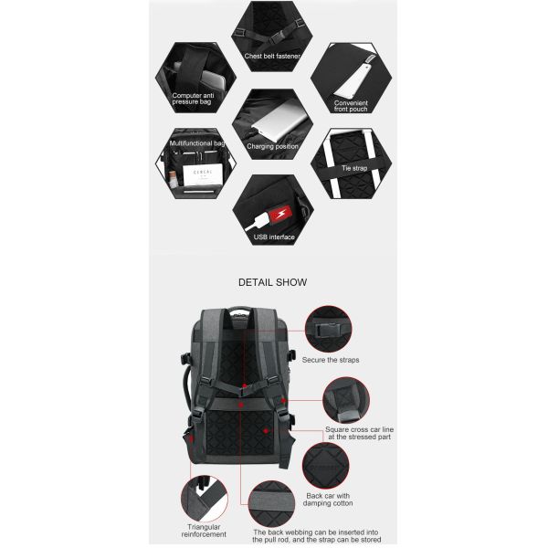 Reduce Pressure & Comfortable Travel: Soft comfortable padded back design with thick but soft multi-panel ventilated padding. gives you maximum back support, so that you can carry your laptop backpack for a long time. Breathable and adjustable shoulder straps of this carry on backpack relieve the stress of shoulder. Foam padded top handle can relieve stress. A luggage strap allows this computer backpack fit on luggage/suitcase, slide over the luggage upright handle tube for easier carrying.