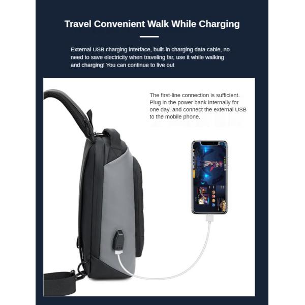 USB CHARGING PORT without portable charger: This Crossbody Sling Backpacks design a USB Charger Port(include 1 USB charging cable),convenience for charging your electronic devices via connecting your own power bank , you can connect your phone to and easily charge during Running, outdoors and travel.