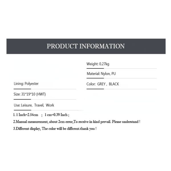 Small Size, Large Capacity, Lightweight: This crossbody bag is lightweight and very durable and sturdy! It's small enough that it doesn't feel like a backpack, but big enough to carry quite a bit. Only 19 x 10 x 31cm, 0.27kg, Small zippered pocket for phones, power bank, wallet or outdoor/travel sundries.perfect for daily used.