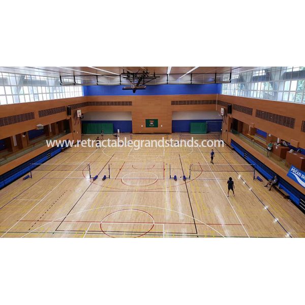 This retractable Echo bench stand is customized for the sports center of an international university. The whole bleacher stores in the space built into the wall like a closet when close, and it can provide seats for spectators when open. Stand dimension is customized based on the project size. The Echo bench seat offers comfortable, generous seat spaces ergonomically contoured for spectator comfort. With bright warm color, Echo seat will enhance the look of facilities.