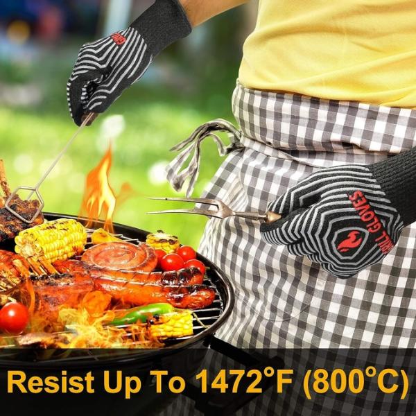Extreme Heat Resistant BBQ Grill Gloves:Enhanced heat resistant gloves, create a barrier between your hands and the heat, making sure you have the best barbeque experience. The five-finger design is flexible, silicone strips ensure your objects do not slip from your hands. It is a great grilling gift for men, perfect for father’s day, birthdays, Christmas, and more. High-quality grilling accessories in your life.