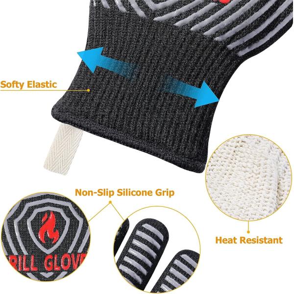 Barbecue gloves,1800°F extreme heat resistant silicone non-slip oven gloves, barbecue, cooking, baking kitchen gloves