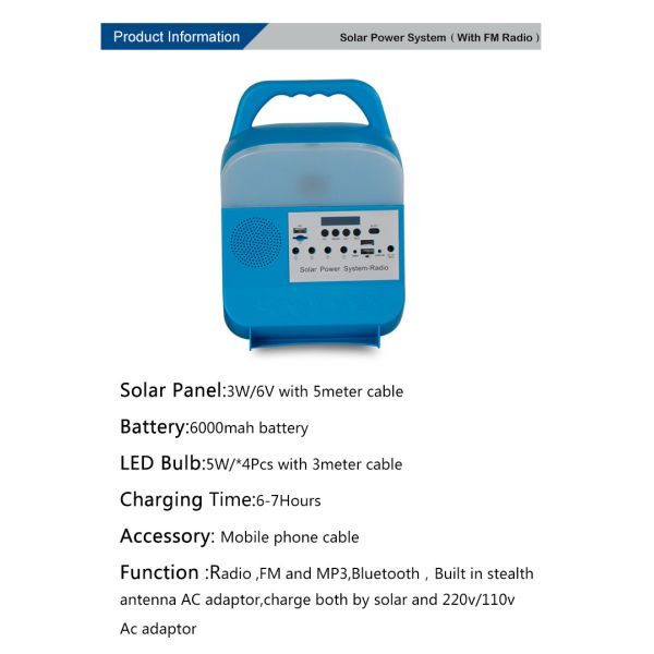 Lithium Battery Solar MP3 Mini Home Lighting System With Radio
