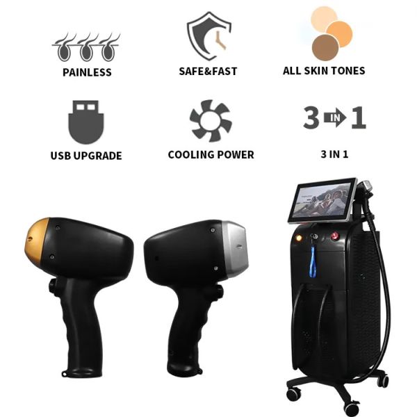 Triple waves laser combines 755nm 808nm 1064nm, suits for all skin and hair types treatment.