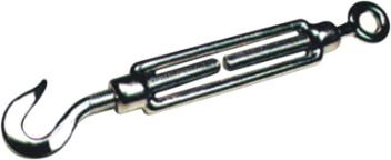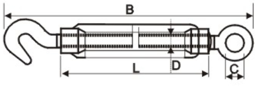 This type of turnbuckle features an eye-shaped fitting at one end and a hook-shaped fitting at the other end. The eye end can be attached to an anchor point or a structure, while the hook end can be attached to a load or a tensioned component.