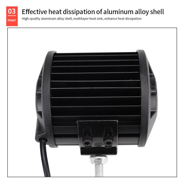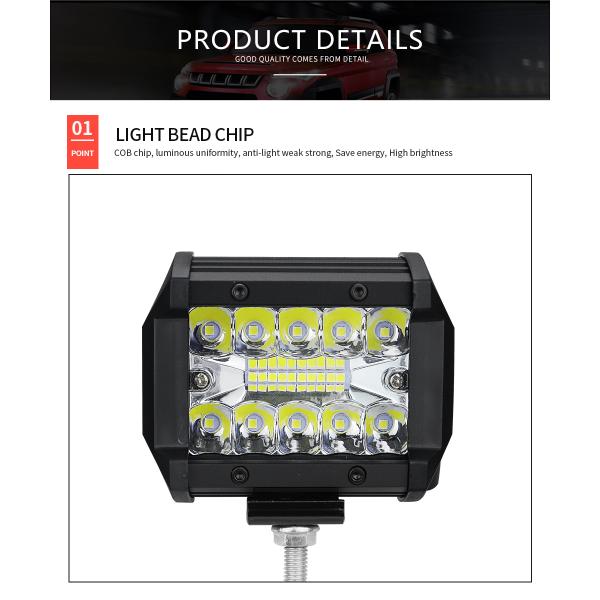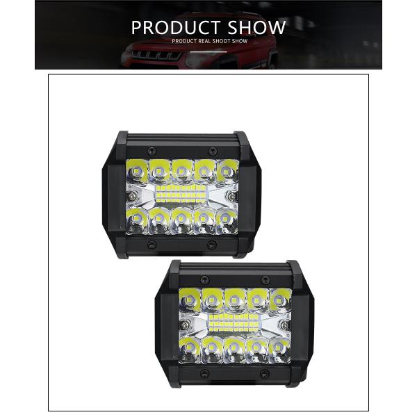 SKU: H-3M-60W Material: Aluminum+PC Voltage: 9-30V LED Chips: 3030 Number of LEDs: 20LED Color : 6500K Life: 30000H Waterproof rating: IP65 Light type: flood+spot G.W: 315g Packing size: 120×85×70mm CTN/CM: 50×40×49cm
