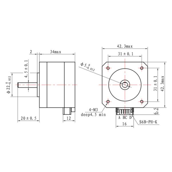 | 42SHD4003 | 0.26N.m | 1.8° | 34mm | D Shaft-20mm | 0.4A |