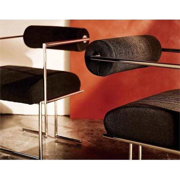 The back design of this dining chair is unique and creative. The back features a thick cylindrical cylinder shaped backrest, which is comfortable and supportive, with the seat bag curved to fit the sitting posture. This not only adds to the aesthetic value of the chair, but also provides excellent comfort and support to the person sitting in the chair. This creative back design will add character and uniqueness to your dining or lounge area.