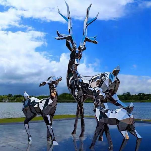 Hotel Decor Deer Stainless Steel Mirror Sculpture Garden Scenic Courtyard Park