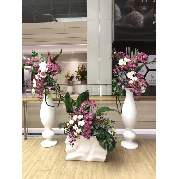 OEM ODM Hotel Lobby Floor Vase White Fiberglass High Decoration