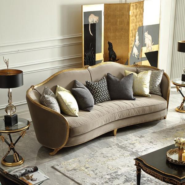 Inspired by French classic style, this sofa set features fine details, curves and carvings that create a romantic, elegant atmosphere.