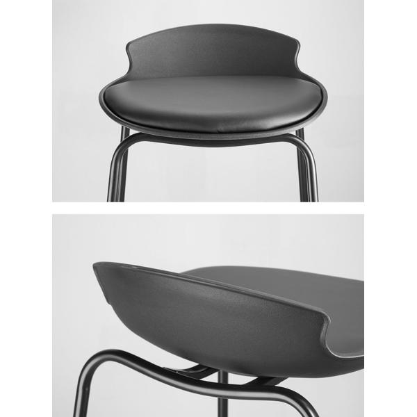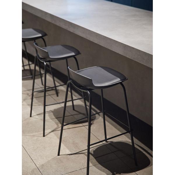 There are not many barstools that can combine a good combination of resting legs and aesthetic simplicity. The dotted lines of the barstool are not in few, but the overall design language is condensed. The black leather encounters the top-down light with a slight greyish sheen, so much so that it is visually very light. The thin legs of the barstools are delicate to the point of glamour, echoing the strong and thin lines of the island table.