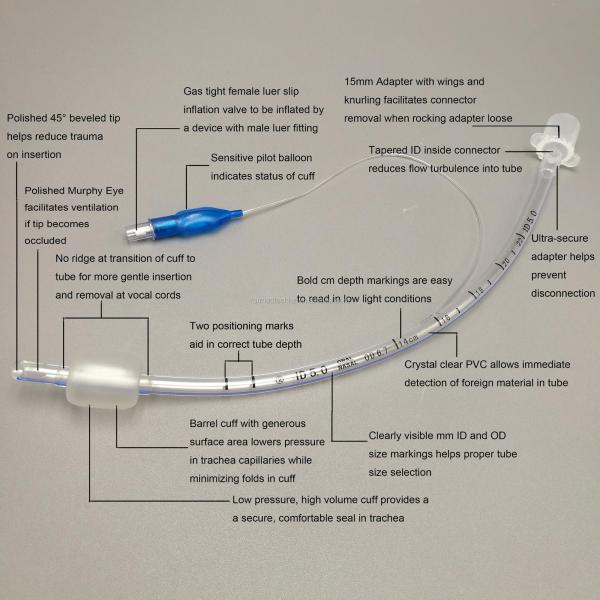 3. Cuff: reduces mucosal irritation by pressure distribution against a wider area of tracheal tissue and provide improved protection against micro aspiration of fluid along the cuff