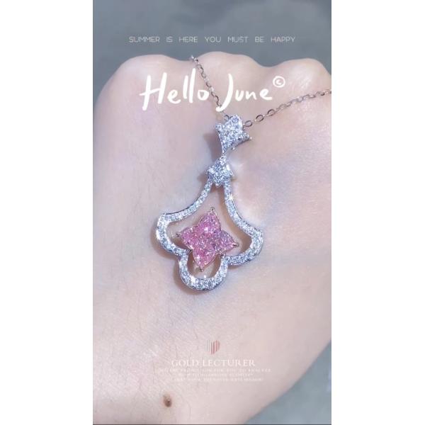 Fancy Diamond Pendant&Necklace Lab Diamond Jewelry Pink Four-leaf Clover Lily Cut Engagement and Wedding Jewelry