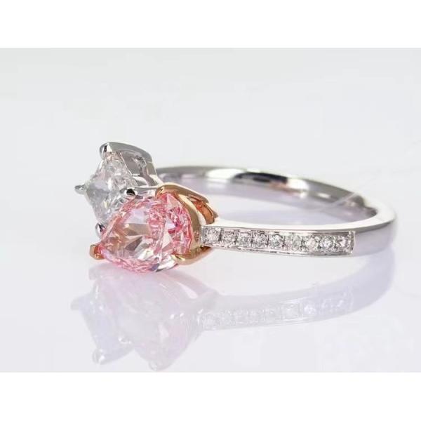Lab Grown Fancy Pink Pear Diamond Two Stones Candy Style Engagement Ring Wedding Ring