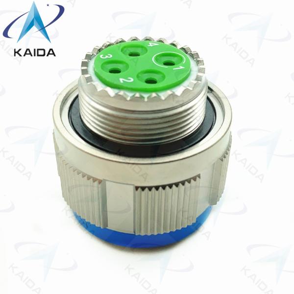 The MIL-DTL-38999 Series Ⅲ connector, manufactured by KAIDA, is designed for Military-Detail 38999 and Detailed-38999 Series Ⅲ applications. This connector type is a Plug and has 4 contacts with a current rating of 7 A and voltage rating of 500V. It utilizes crimped contact type.