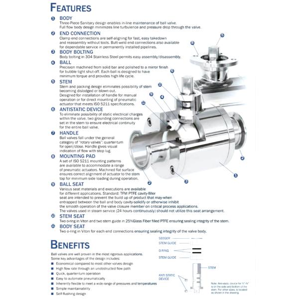 • Connection of anti-dislocation design, this sanitary quick installation ball valve in order to prevent the valve switch from being misoperated, the switch is fully open, fully closed position is provided with a locking hole to ensure that the valve is in the correct position.