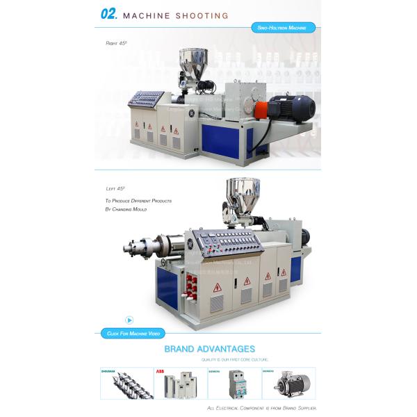 The machine has the characteristics of low shear rate, difficult to decompose, uniform plasticizing and mixing, stable quality, high output, wide application range, long service life and PVC powder direct molding.