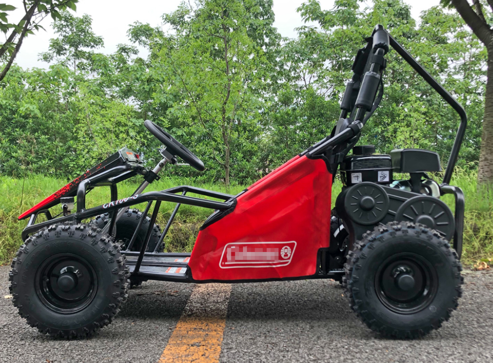 Cylinder displacement: 98cc Number of cylinders: single cylinder four strokes Number of valves per cylinder: 2 Valve mechanism:OHV Engine cooling method: air cooling Starting mode: recoil pull rope Ignition mode: carburetor Compression ratio: 8.5:1 Rated power: 1.8KW/3600RPM Rated torque: 5N.M/3200RPM Transmission type: centrifugal clutch Drive mode: chain drive Gear: Forward gear Maximum speed: ≤ 25 km/h Tank capacity: 1.6 L Fuel number: 92 # Net weight: 66Kg Rear brake type: drum brake Front wheel model: AT13×5-6 Rear wheel model: AT13×5-6 Clearance from place: 66mm Wheel base: 954mm Vehicle size (length × width × height) 1600×840×1220mm | ||