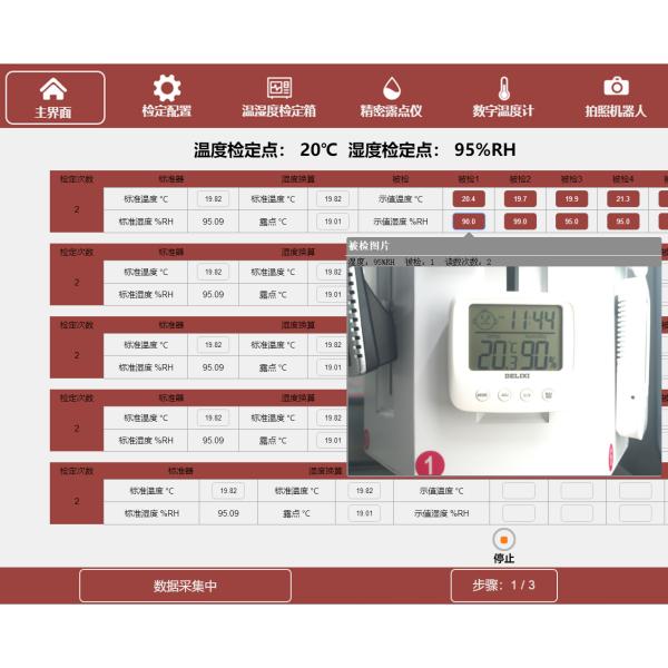 The temperature and humidity verification chamber in the system will be successively controlled according to the inspection points required by the regulations. When each inspection point is stable, the system will wait 30 minutes for automatic collection according to the requirements of the regulations. In the whole verification process, the photo identification time is basically negligible relative to the temperature and humidity control and stability time.