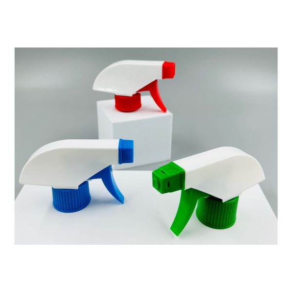 A plastic trigger sprayer is a device that is commonly used for dispensing various liquids such as cleaning agents, insecticides, and perfumes. It is made of plastic components, including the body, trigger, spray nozzle, and dip tube. The trigger sprayer is designed to be attached to the neck of a bottle filled with the liquid to be dispensed. The user simply activates the trigger by squeezing it, which sends the liquid up the dip tube and through the spray nozzle in a fine mist or spray. Some trigger sprayers may have adjustable nozzles that allow the user to change the spray pattern, such as from mist to stream. The sprayer may also have a lockable feature that prevents accidental spraying when not in use. The plastic trigger sprayer is typically lightweight, economical, and user-friendly, making it a popular choice for household and industrial use.