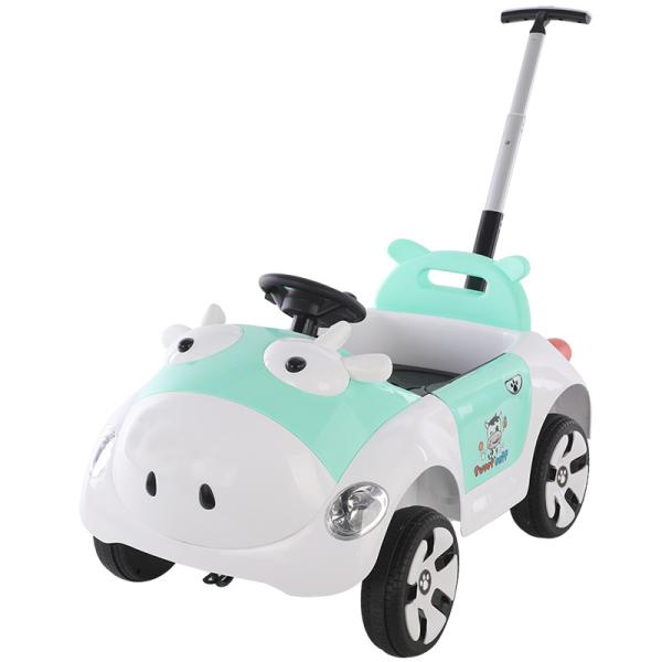 story, Bluetooth music, USB socket, 2.4G third gear. Keywords remote control, four-wheel shock absorber, portable push handle, Double doors, swinging back and forth, 6V1000 charging Device, 1 6V7 battery, 2 380 switchable Clutch motor, 3 colors optional. |