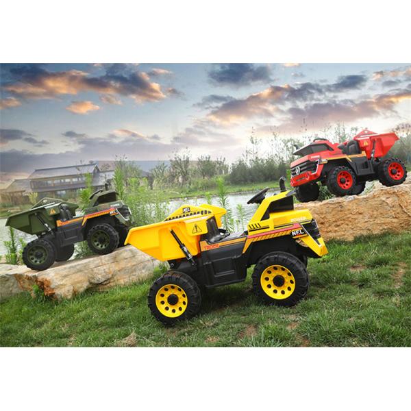 one-button start, one-button quick installation of steering wheel, USB interface, MP3 socket, high and low speed, dynamic music, LED lights, electric tipping bucket, four-wheel shock absorber, rocking back and forth, mobile phone remote control, 2.4G Bluetooth remote control one-to-one! |