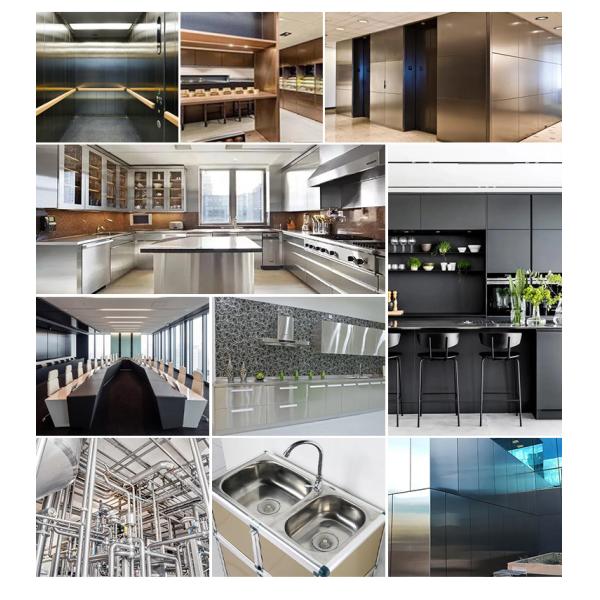 NO.4 Stainless Steel is suitable for various applications, including architectural decoration, furniture manufacturing, kitchen equipment, appliance manufacturing, etc. Common applications include wall decoration, kitchen cabinets, appliance housings, etc.