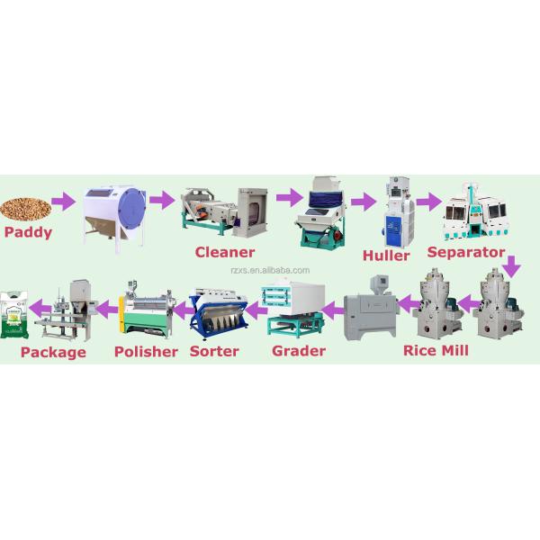 This rice mill plant is composed of elevator, pre-cleaning,de-stoner, rice huller, paddy separator,three passes of rice milling,white rice grading,color sorters, mist polisher,packing machine,control cabinet,etc.