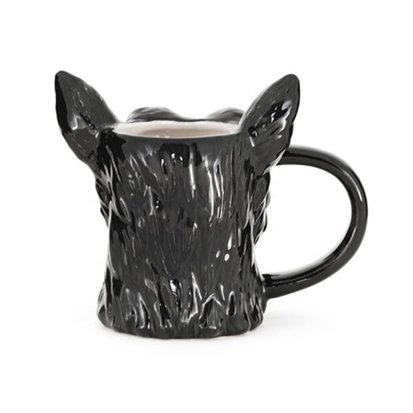 Best Selling cute earthenware 3d black dog shaped Animal Ceramic Mugs Design with 3D handpaint