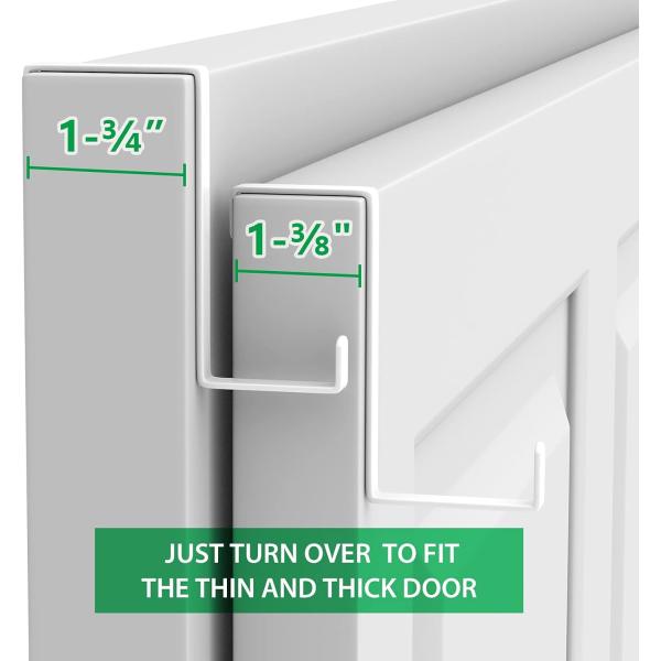 * High Quality with Sturdy Metal - Crafted with heavy duty metal, the over the door hook is durable and strong enough that will not deform and snap easily. And the load-bearing data of the door hanger hook is up to 15 lb, holding up your clothes like coats, towels and items like purses, belts and shoe organizer effortlessly and steadily.