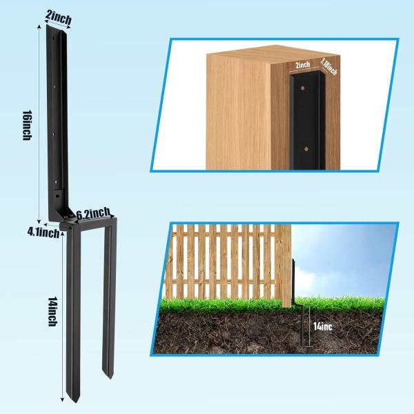 Anchors are utilized to ensure the stability of posts by securely fastening them in the ground. Repair the deteriorated posts on the fence without replacement that ensure the fence remains straight and stable. Avoid the need of rebuilding by quickly,easily repairing reinforcing wooden fence posts.