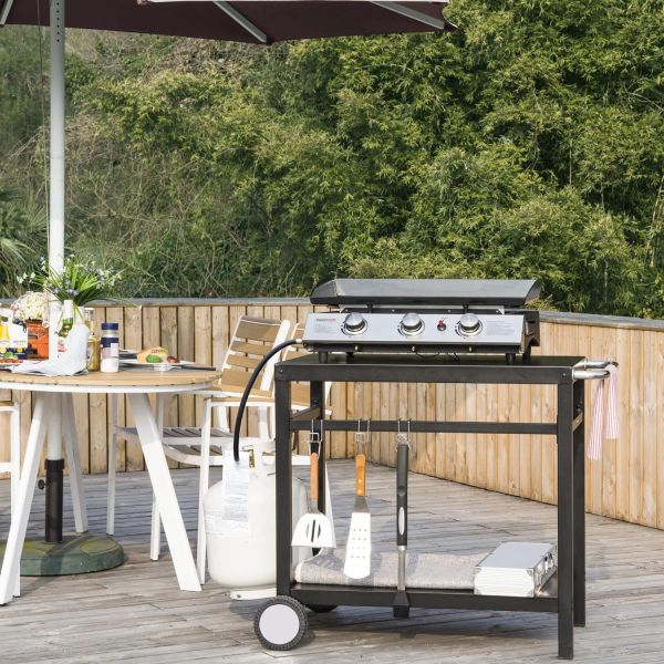 * Stable & Movable:Grill cart has two directional wheels,two feet and side handle