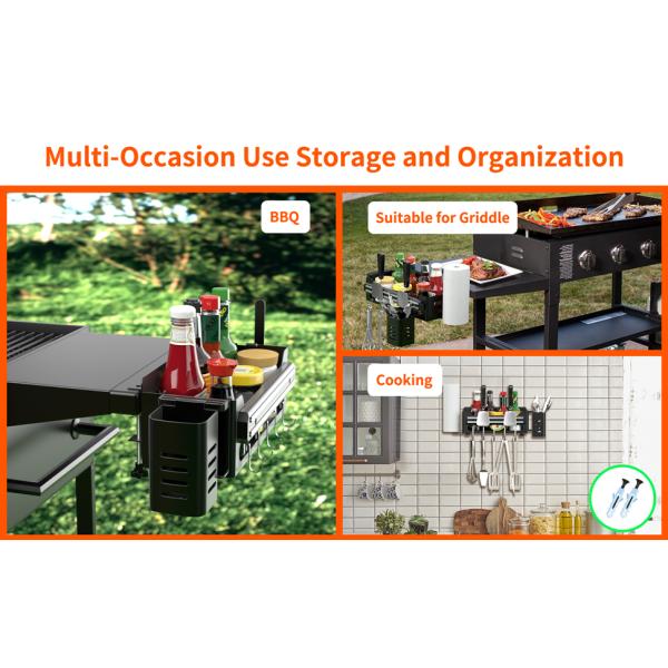 Usage | hang BBQ tools and store the BBQ Sauce and condiments |